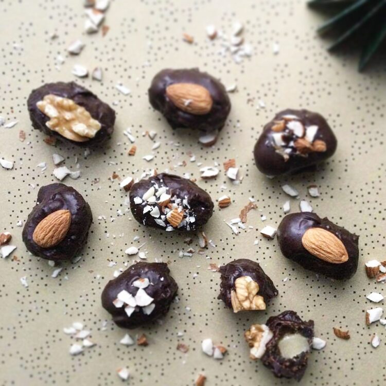 Ingen jul uden dadelkonfekt, am I right?!? 😂 Min mand er ikke så vild med dem, så jeg har dem helt for mig selv. I don’t mind 🙈🤷♀️ Dadlerne er fyldt med marcipan, svøbt i chokolade og toppet med nødder. Det. Er. Så. Lækkert. Og. Simpelt 😋